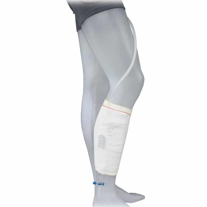 Das Material der Beinbeutel-Halterung sollte eine gewisse Festigkeit aufweisen, jedoch so flexibel genug sein, dass die Blutzirkulation zu keiner Zeit beeinträchtigt werden kann.