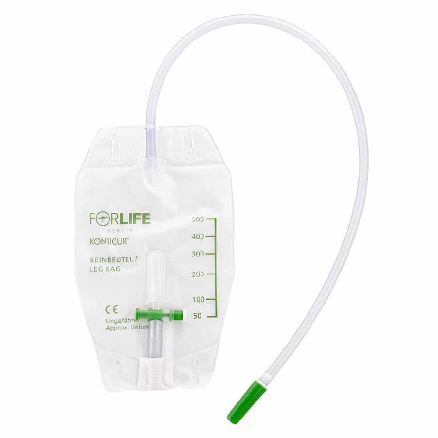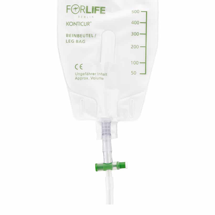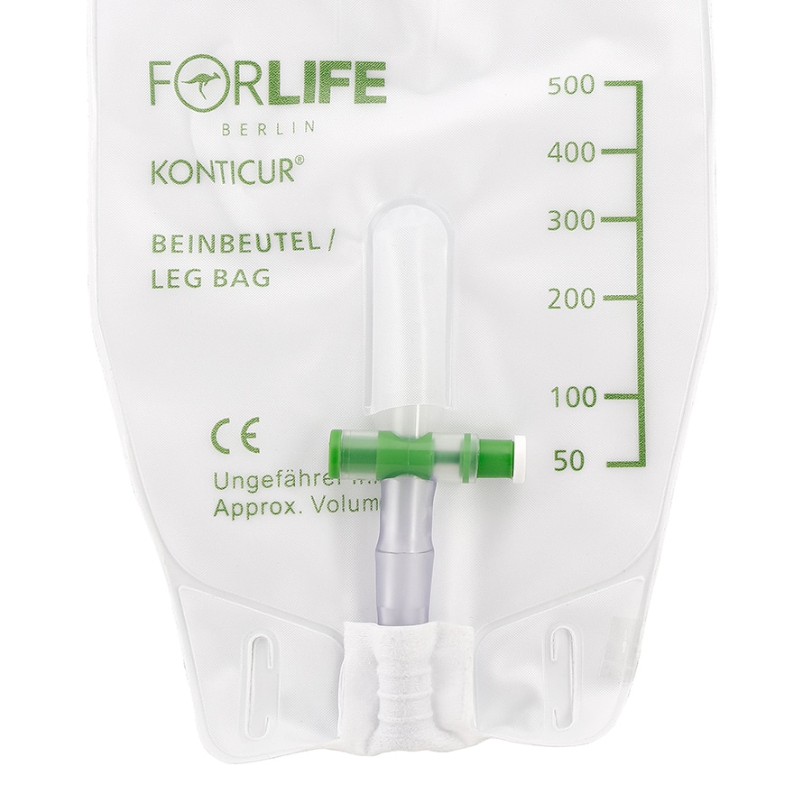 Der KONTICUR Beinbeutel ist wahlweise mit 500 ml oder 750 ml und mit 10 cm oder 50 cm Schlauchlänge erhältlich. Er ist mit einem Vliesüberzug auf der dem Körper zugewandten Seite ausgestattet. Das 3-Kammersystem ermöglicht ein geräuscharmes Tragen des Beutels.
