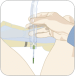 Führen Sie nun den Katheter vorsichtig in die Harnröhre ein.
